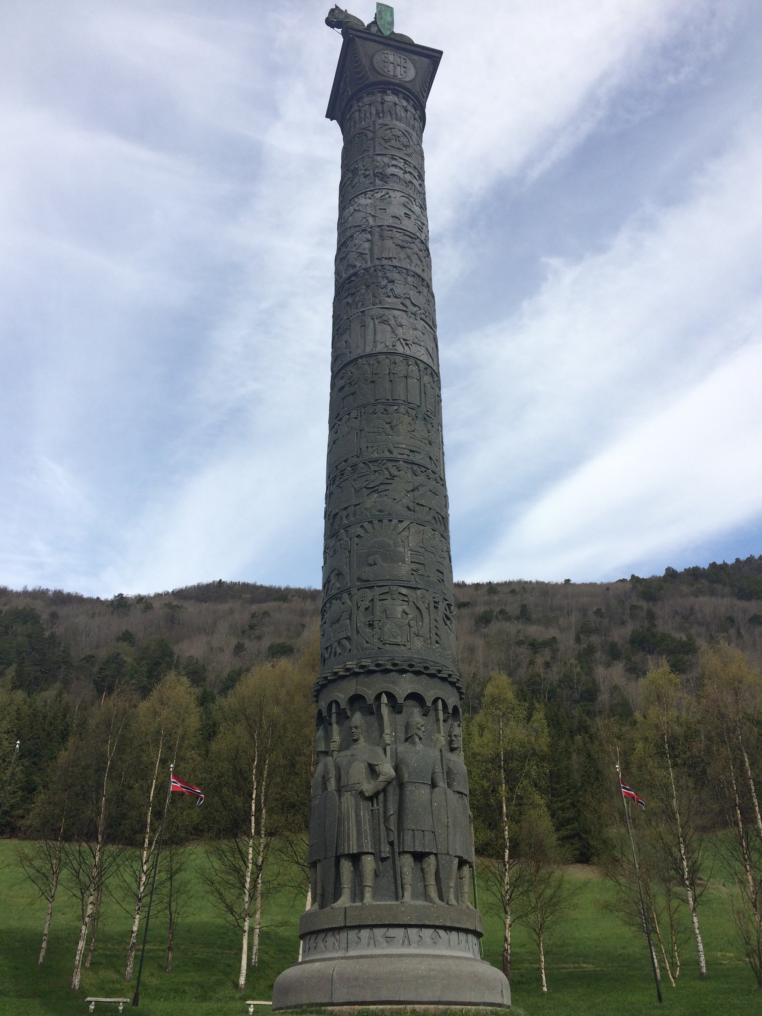 Den ausgerufenen Wettbewerb gewann der Bildhauer Professor W. Rasmussen. Er entwarf eine Säule, die die Geschichte Norwegens vom Jahr 872 – der Errichtung des Reiches – bis zum Jahr 1814 – dem Jahr der Reichsversammlung, zeigte. Als der 2. Weltkrieg begann, unterbrach man die Arbeiten an der halbfertigen Säule. Aufgrund politischer Unklarheiten wurden die Arbeiten nach dem Krieg auch nicht fortgesetzt. Erst Jahrzehnte später nahm der Hotelbesitzer und „König des Jotunen“ Åmund Elvesæter das Zepter des Handelns in die Hand und platzierte die 40 Meter hohe Säule dort wo sie heute steht. 1992 wurde sie vollendet.